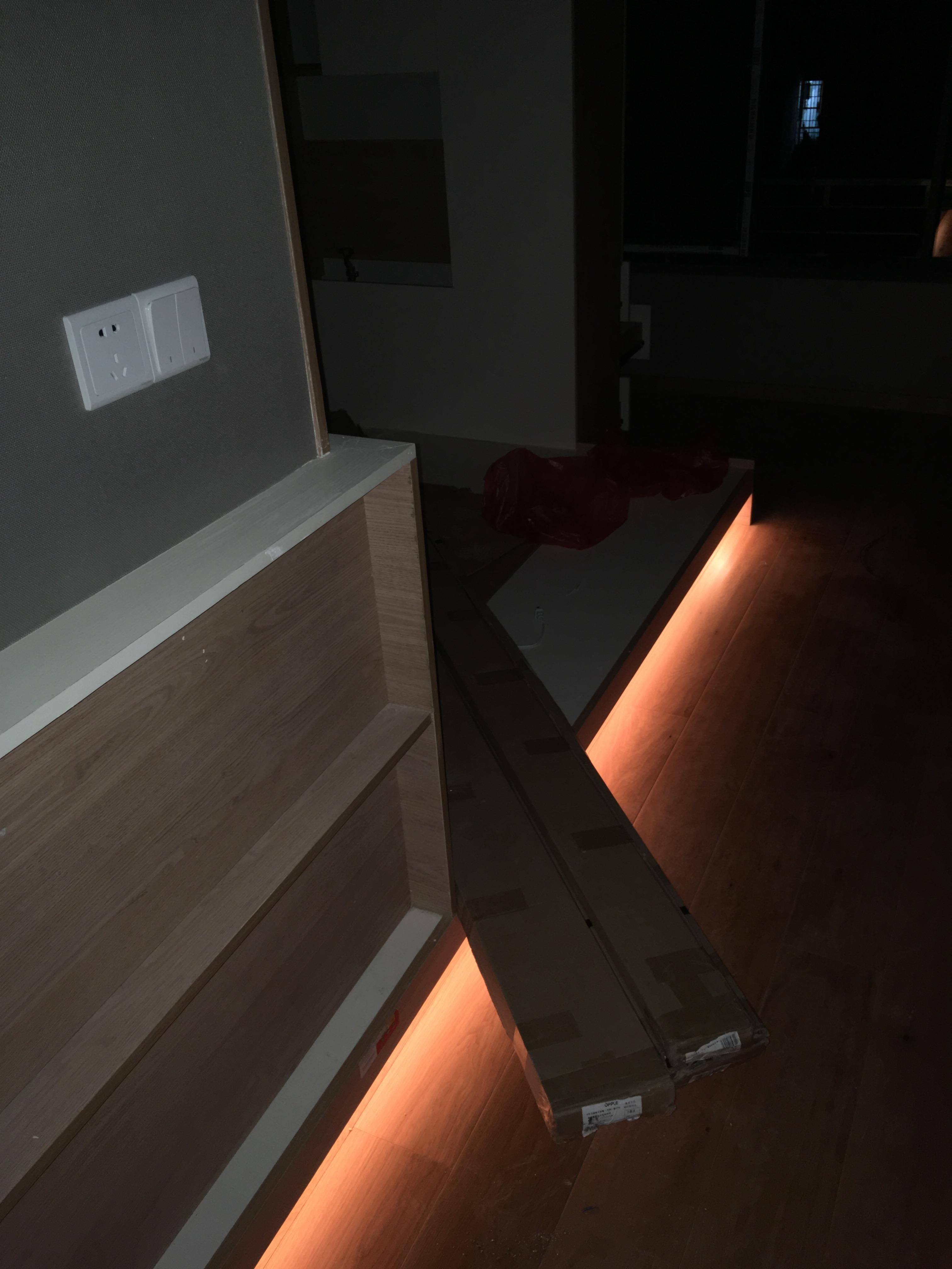 這條床下燈帶在夜晚亮起來(lái)的時(shí)分,我竟有點(diǎn)感動(dòng),這么些年過(guò)去了,似乎也沒(méi)閱歷多少美妙的時(shí)辰。