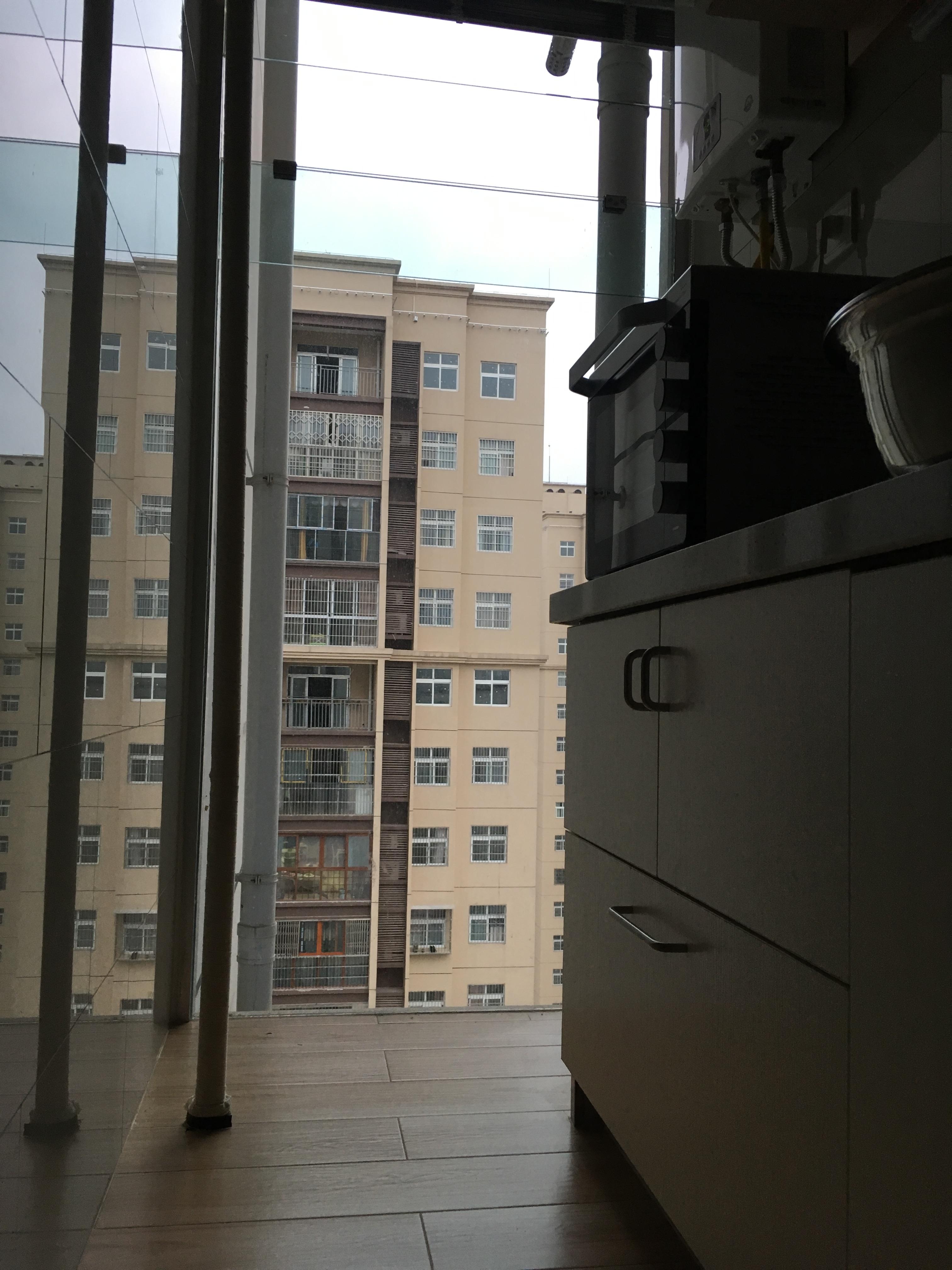 這原本是個(gè)生活陽(yáng)臺(tái),和廚房打通了,然后想安個(gè)落地的無(wú)框窗,遺憾的是本地沒(méi)有成熟的工藝。