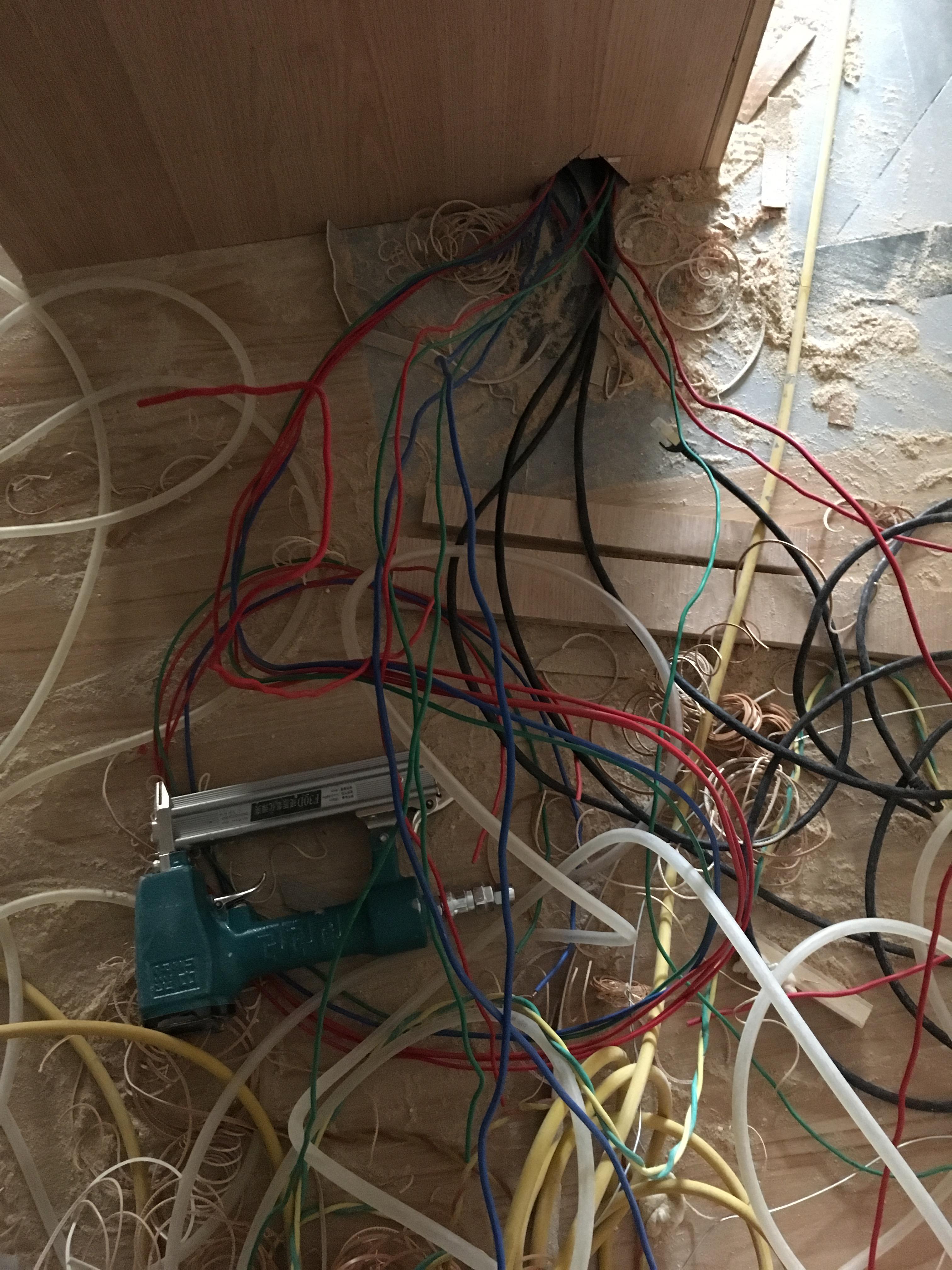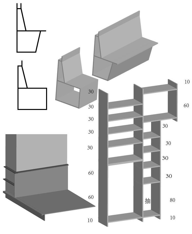 這個(gè)算是平面布置圖和面板表示圖了吧,不過(guò)只要我自己才看得懂。PS真是不適宜畫(huà)圖,畫(huà)起來(lái)累,還不能標(biāo)注。我也就用左圖大約看看,空間大小能不能完成我想要的功用,然后用右圖核對(duì)下工人開(kāi)的線槽,計(jì)算下面板個(gè)數(shù)。