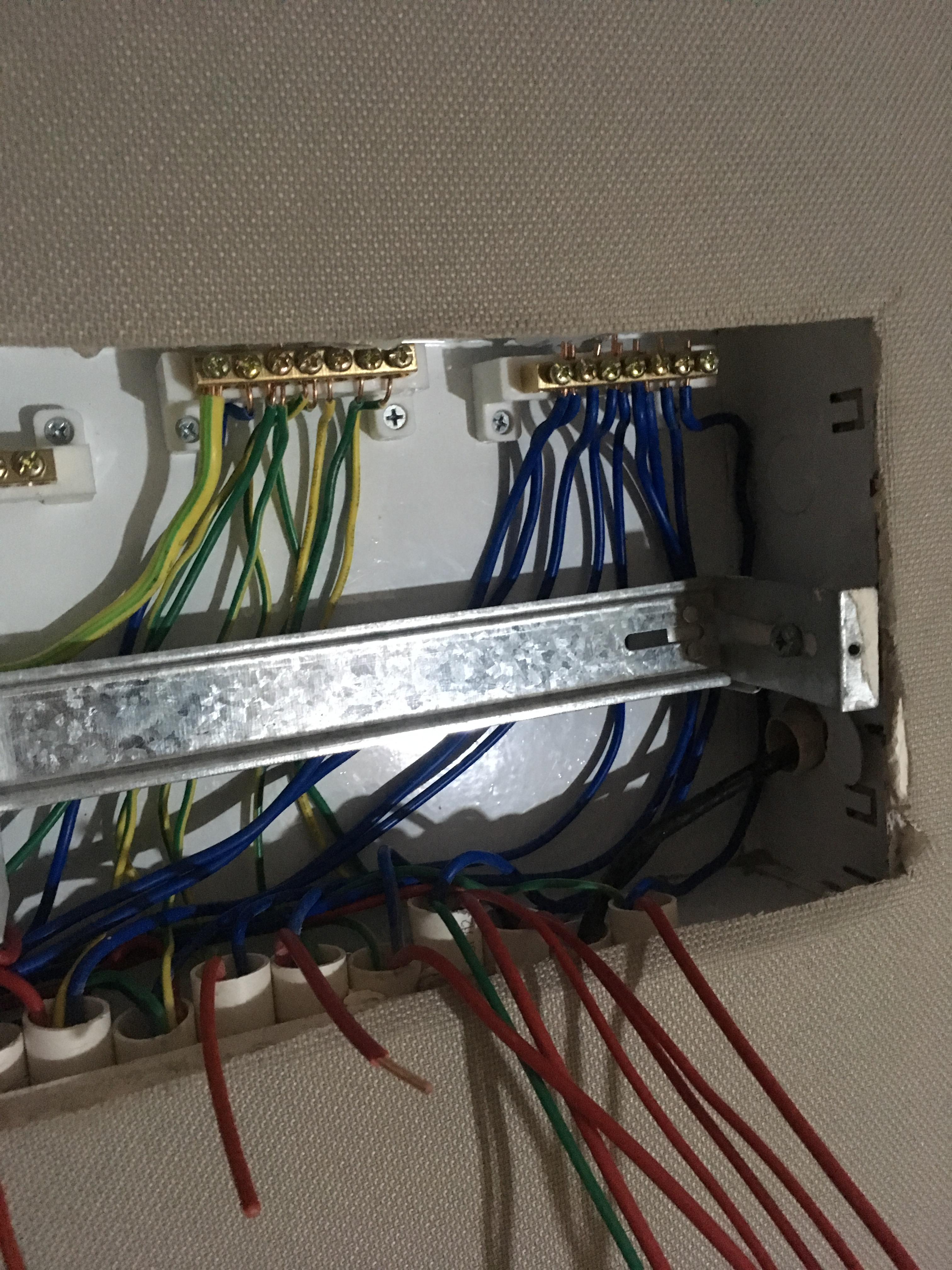 強(qiáng)電箱的接法,除了零地排之外,我還買(mǎi)了火排,總開(kāi)到火排接了兩根四平的線,傳說(shuō)中的*平安接線法。