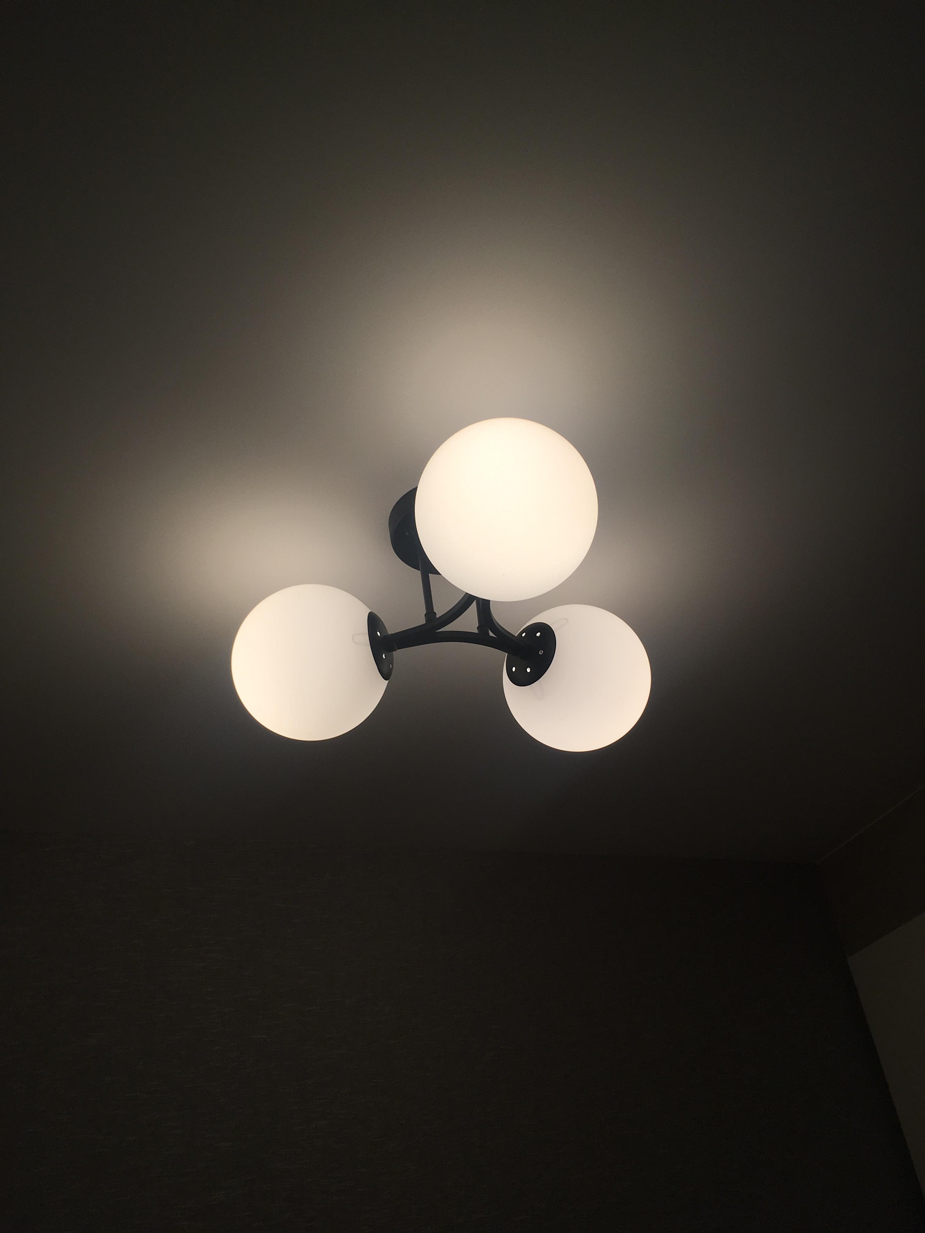 次臥室網(wǎng)購(gòu)的半吊燈,我怕父母接受不了太花哨的東西,簡(jiǎn)直只裝了這一個(gè)燈。