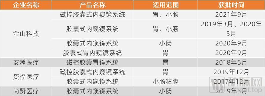 此外,膠囊內(nèi)鏡在防止交叉感染方面異樣也表現(xiàn)優(yōu)異。據(jù)了解,安翰科技、金山科技、資福醫(yī)療、尚賢醫(yī)療均已推出膠囊內(nèi)鏡產(chǎn)品,并銷往全球各地。